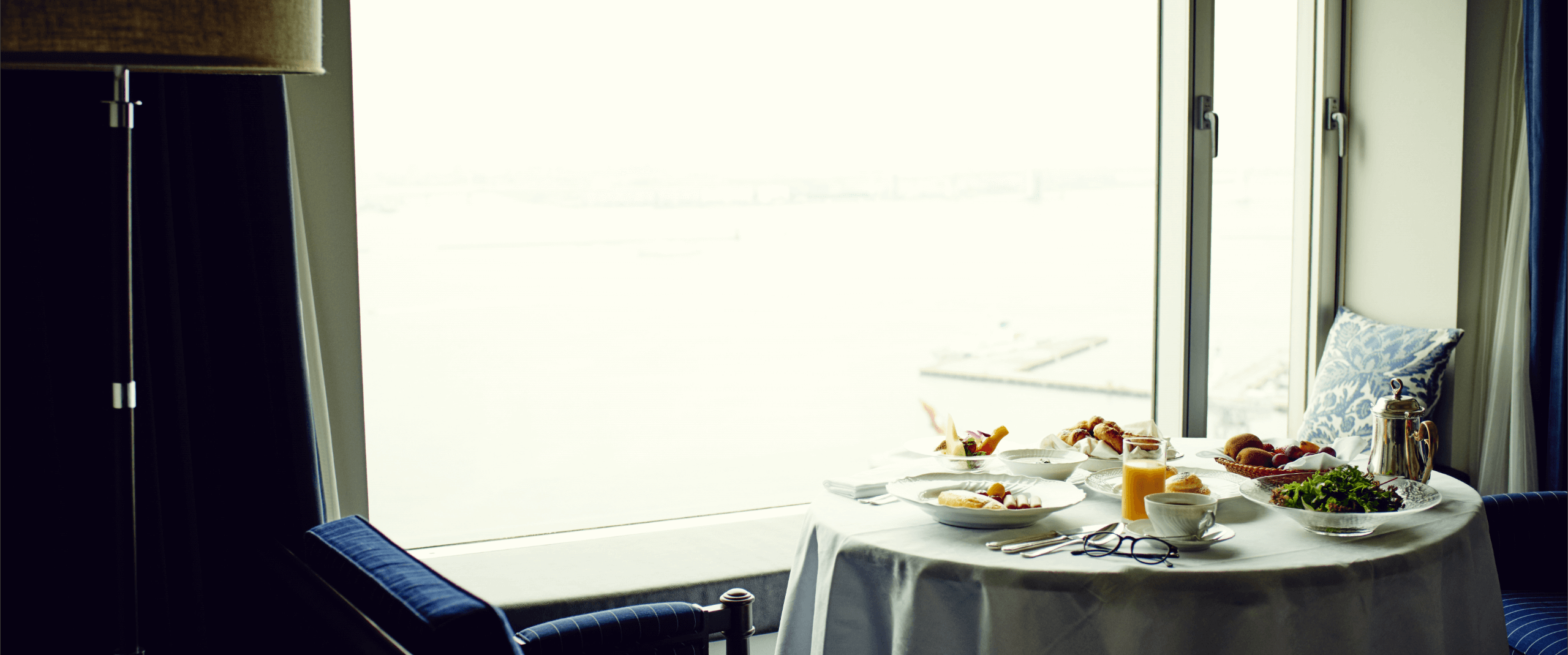 只有客房服务才能在客房这种非日常的私人空间里,享受酒店的料理。从早餐到夜宵24小时,使用时令食材的各种菜品一应俱全。从酒店特制汉堡等简餐到法国料理的全餐,请根据您的住宿情况进行选择。
