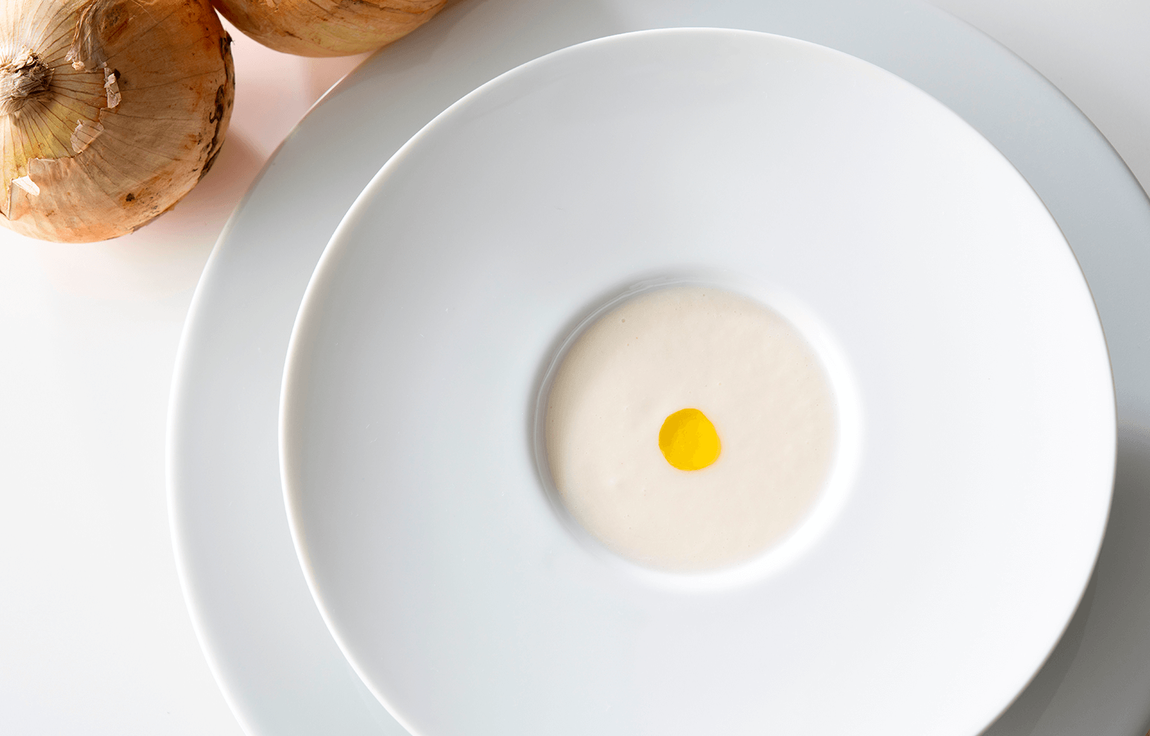 The chef’s soups are exceptional, prepared with great care and time using his own methods to draw out the full character of seasonal ingredients. One of the most popular is the new-season onion soup served from March to June, made without adding any water to concentrate its natural flavor.