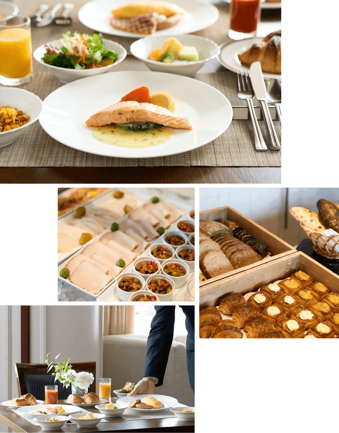 평소보다 천천히 일어난 아침, 커튼을 열자 눈앞의 바다에는 아사히가 빛나고, 새로운 하루를 축복하고 있는 것 같았다. 2층 라운지에서는 갓 구운 빵의 향기가 감돌고 있다. 아침 식사도 좋아하는 요리를 선택할 수 있는 뷔페 형식이지만, 메인 접시는 개별적으로 테이블에서 주문할 수 있다. 오믈렛이나 연어 소테 등 완성을 서빙 해주는 것이 기쁘다. 배에 여유가 있으면, 모닝 스위트도 리퀘스트 가능하다.