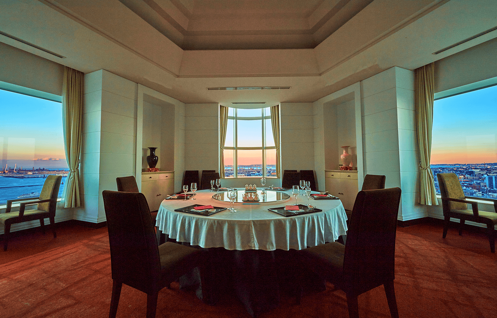 3 方向に窓を配し、横浜ならではの海・街の眺望を一望する格式高い特別室です。